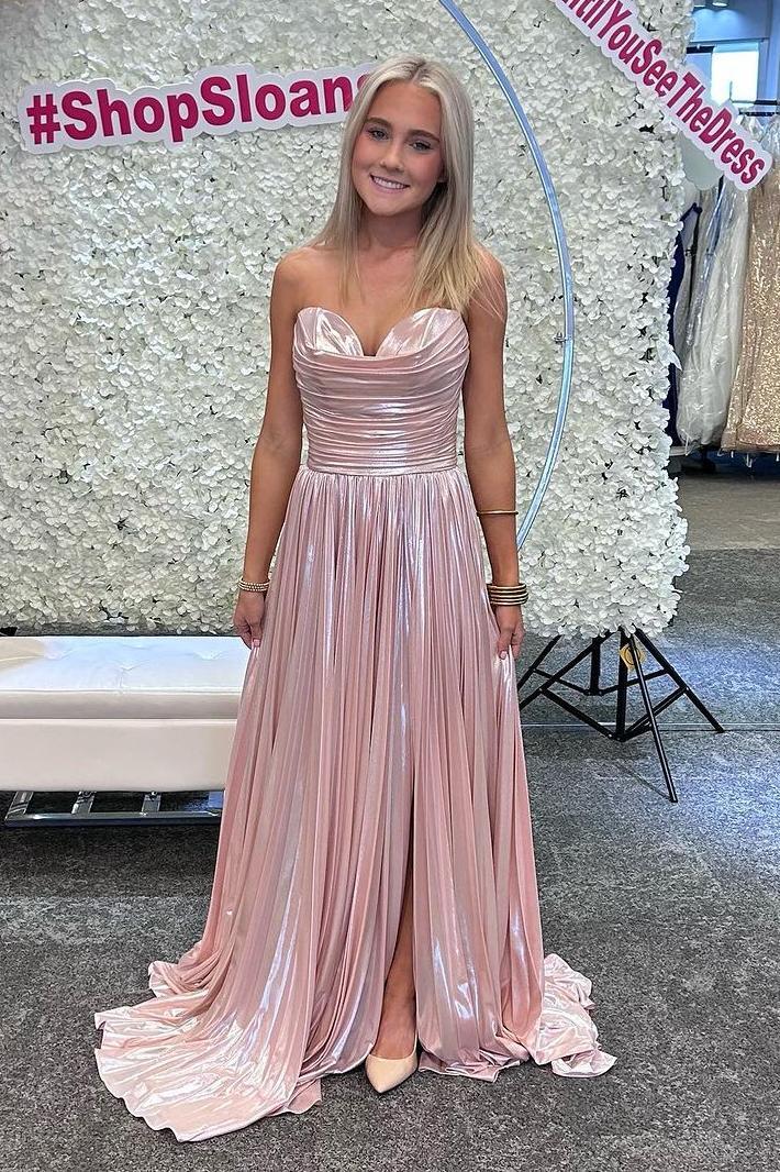 Strapless Gold Ruched A-line Long Formal Dress