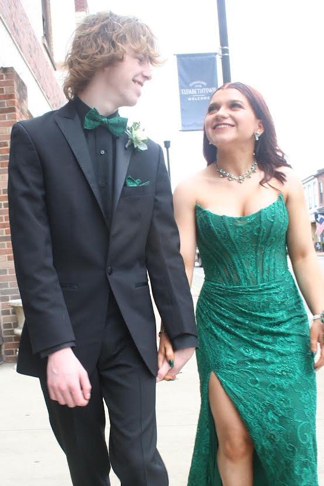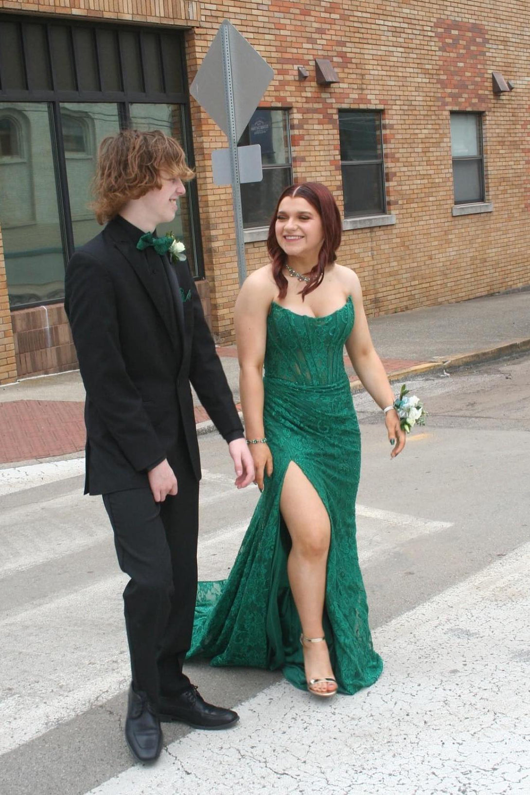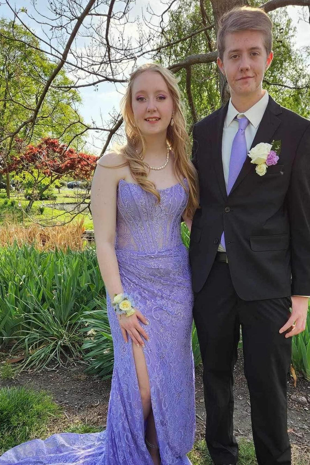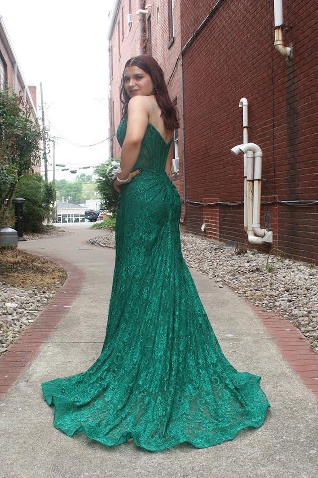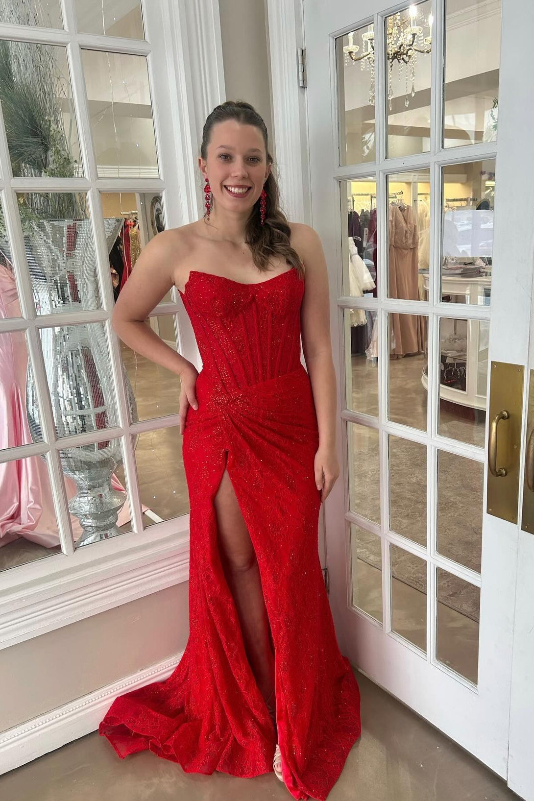 Strapless Hot Pink Lace Mermaid Long Formal Dress with Slit