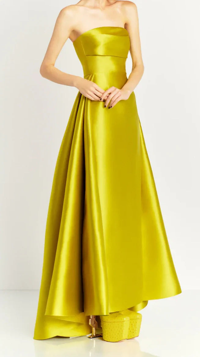 Strapless Lemon Yellow Satin Party Dress, Long Prom Dresses For Women, SSR3462
