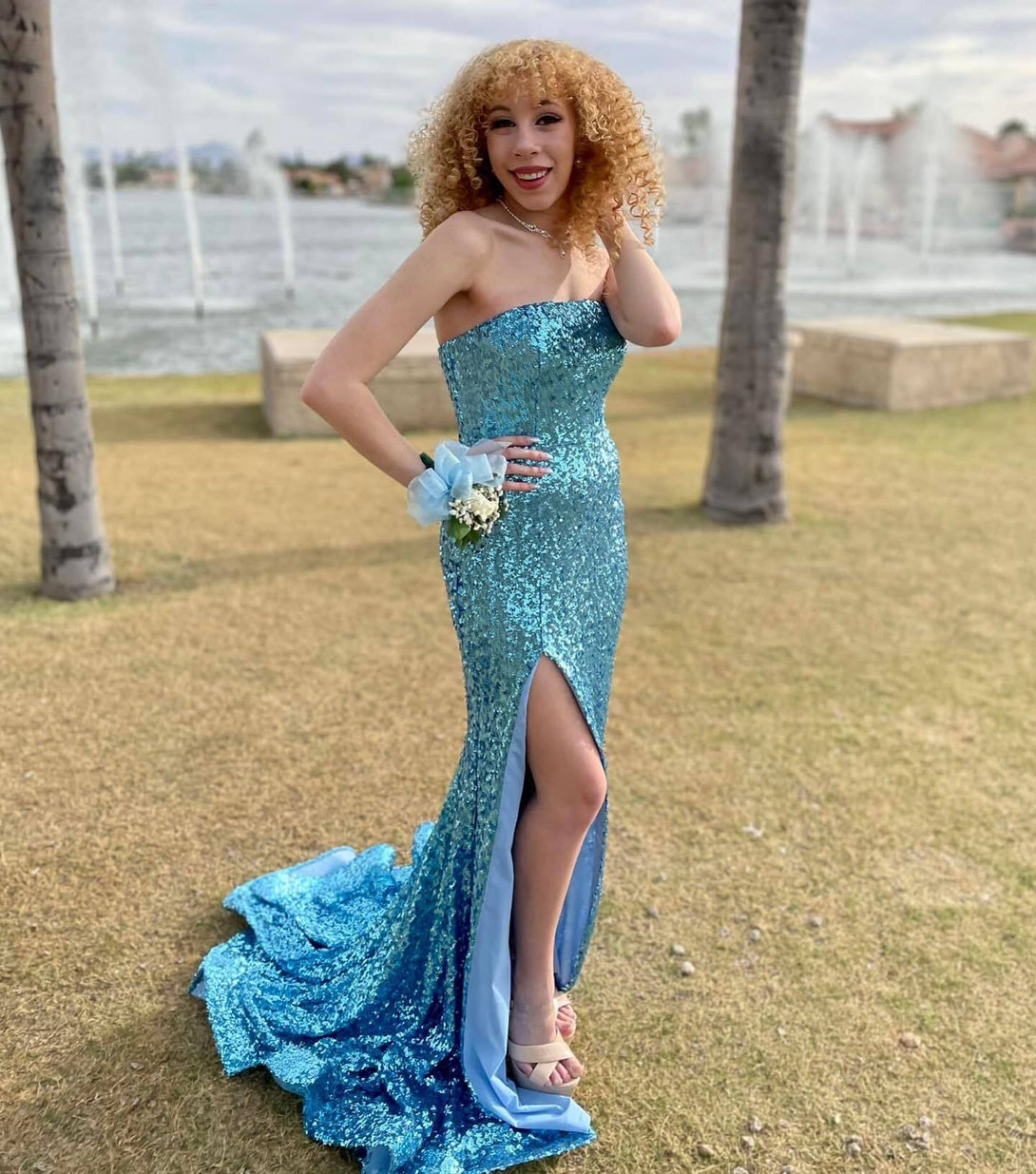 Strapless Sequin Mermaid Long Formal Dress with Slit