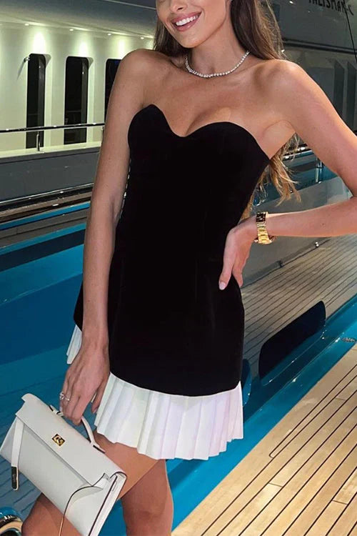 Strapless Velvet Black Mini Dress Off Shoulder Charming Homecoming Dress Party Dress
