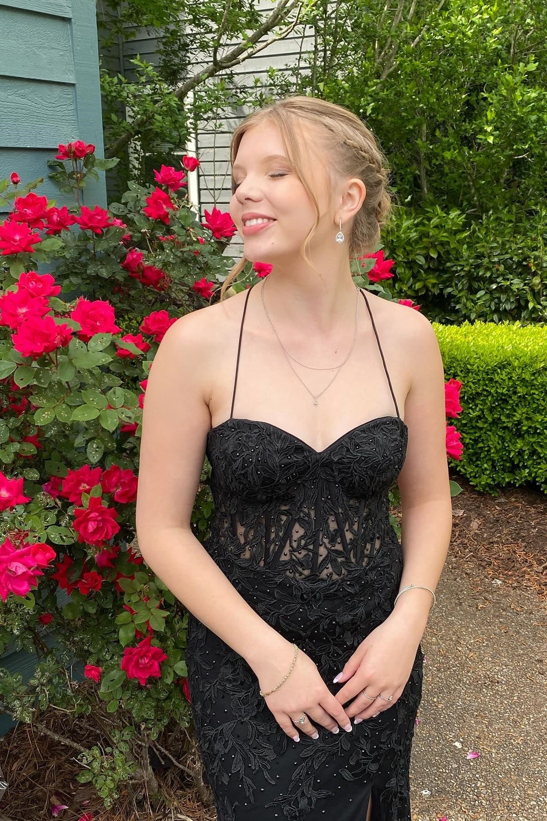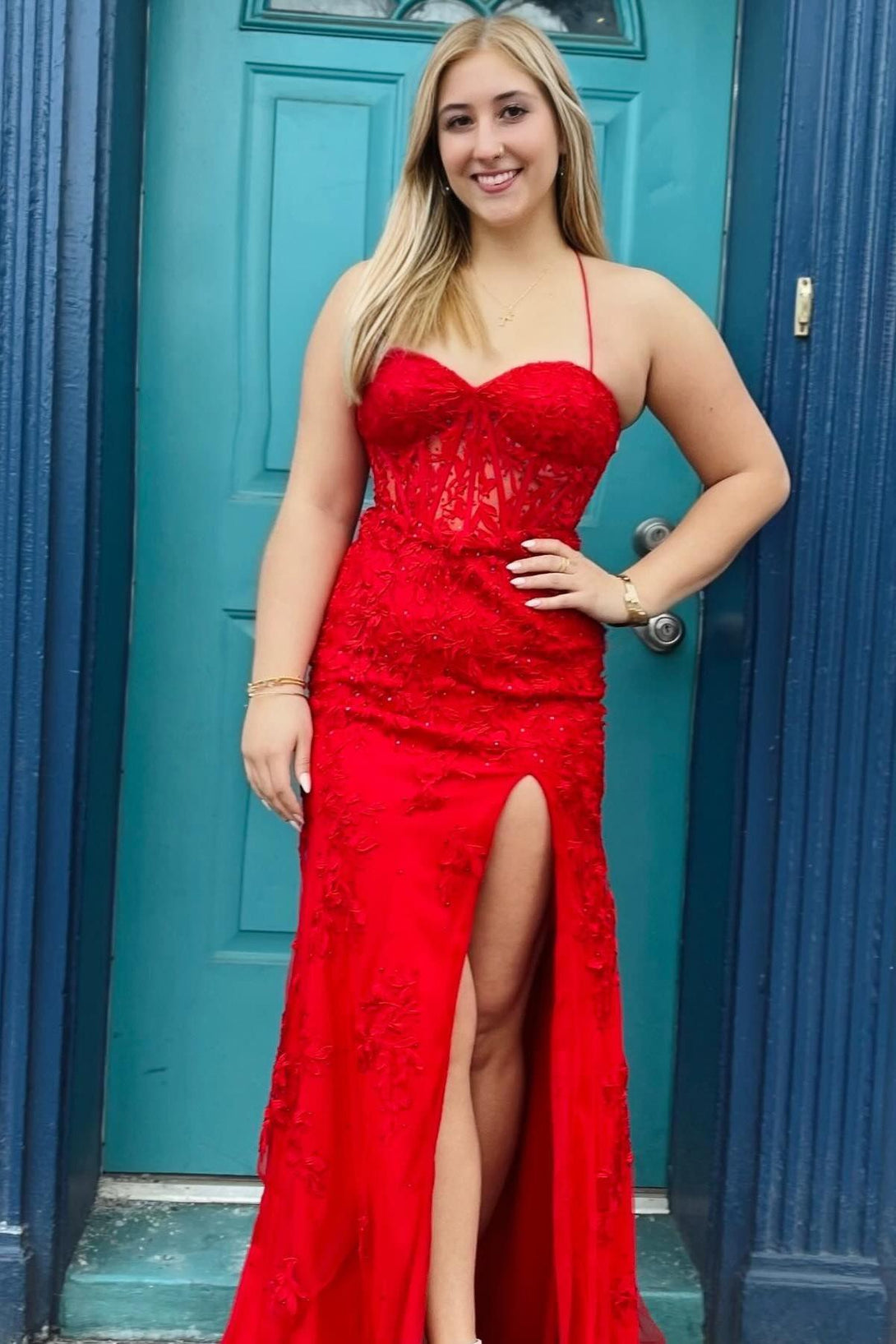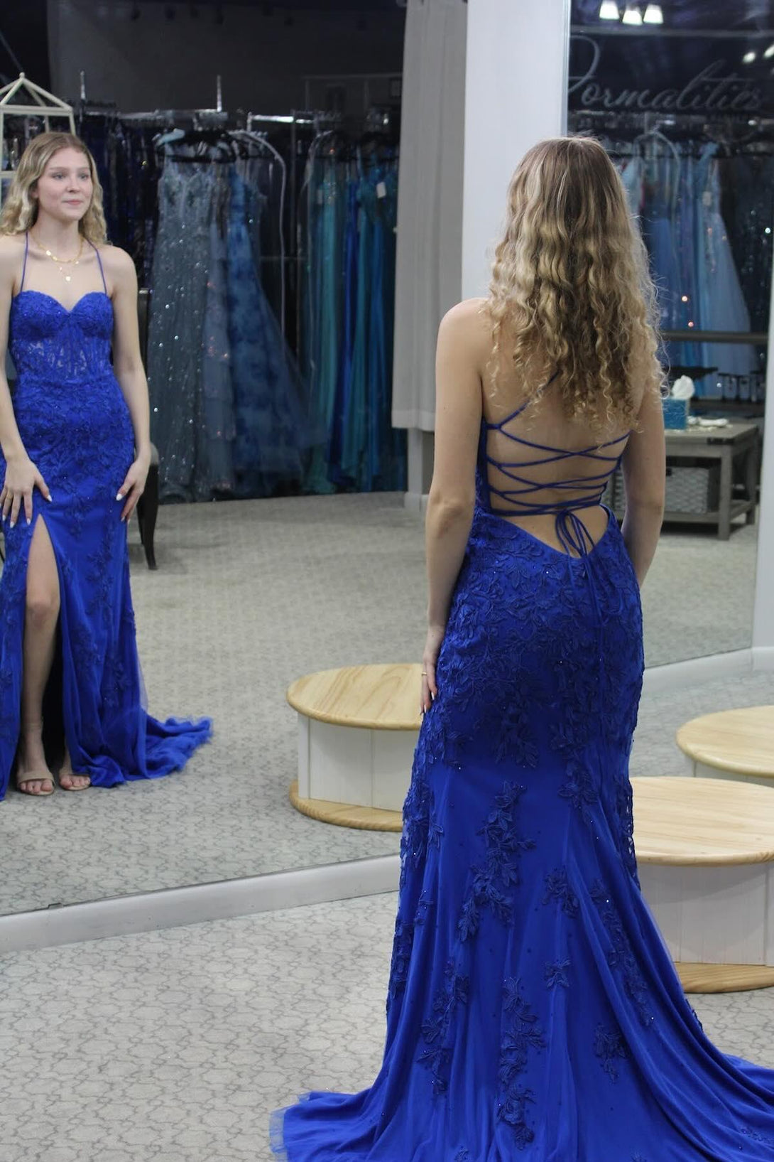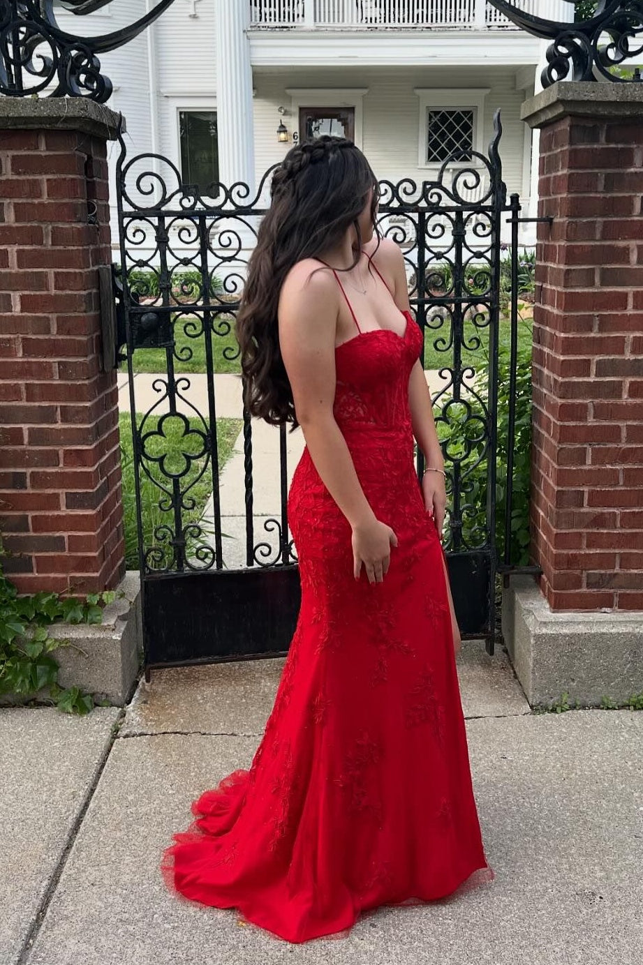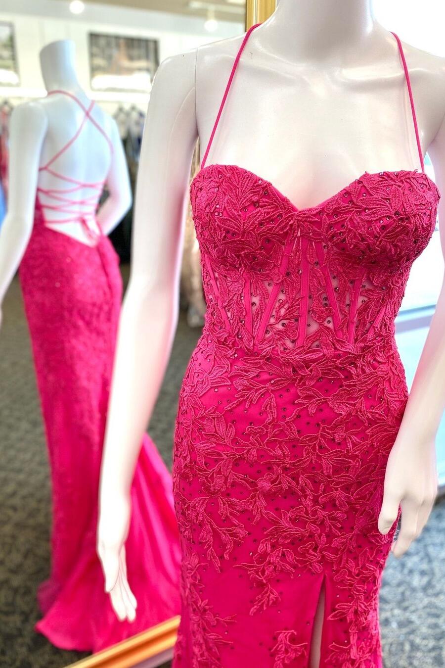 Straps Hot Pink Lace Mermaid Long Prom Dress