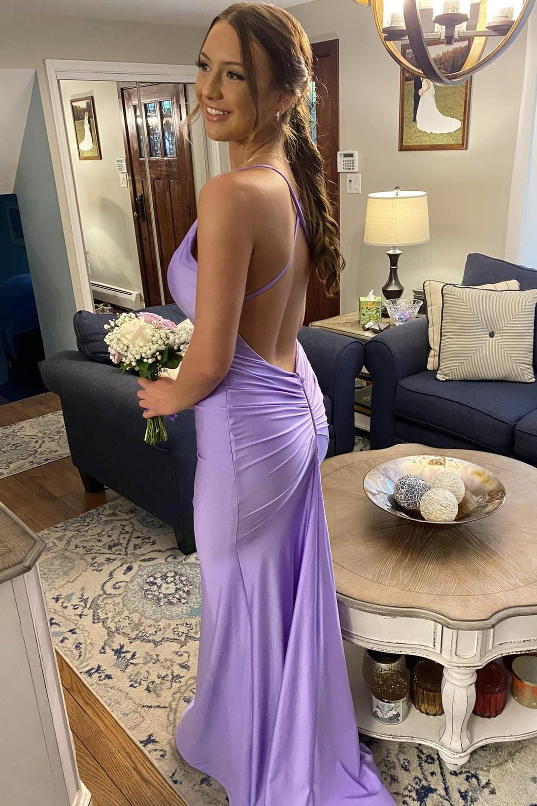 Straps Open Back Royal Blue Mermaid Long Formal Dress