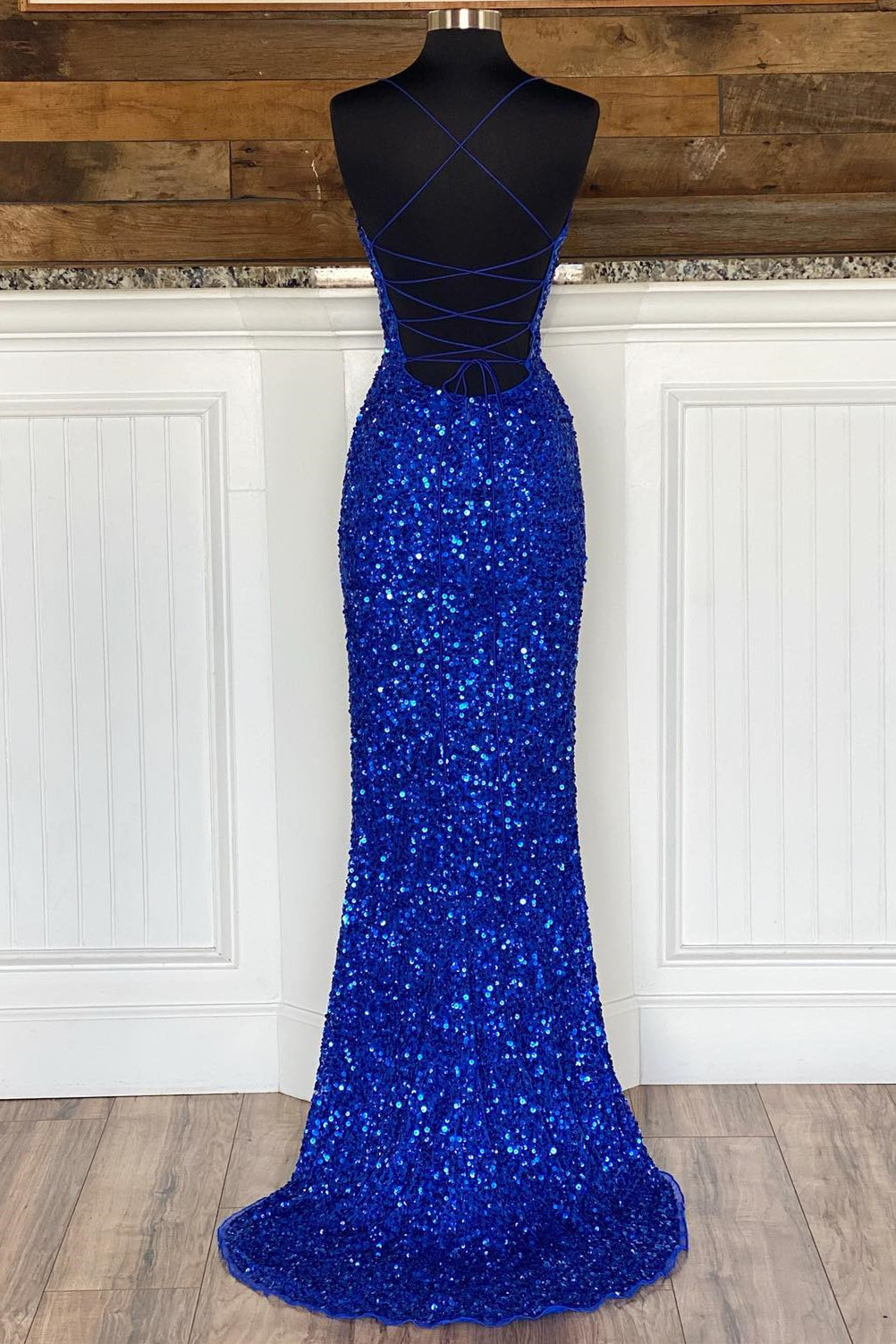 Straps Royal Blue Sequin Mermaid Long Formal Dress