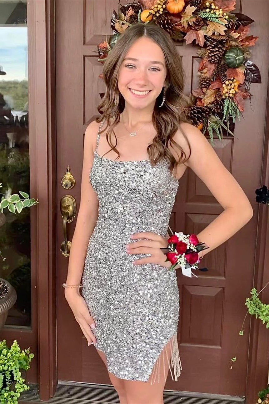 Straps Royal Blue Sequin Tassels Tight Mini Dress