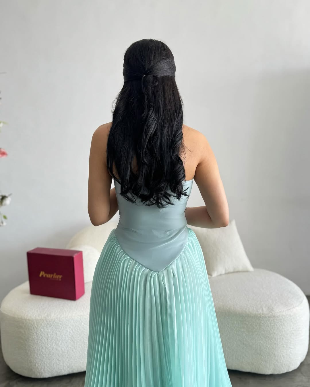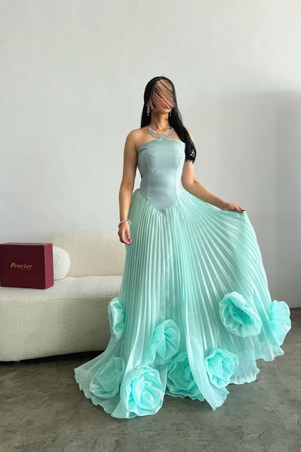 Stunning Mint Green Pleated Strapless Prom Dress ssr0624