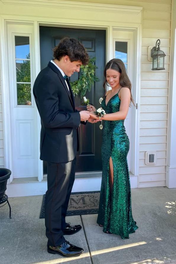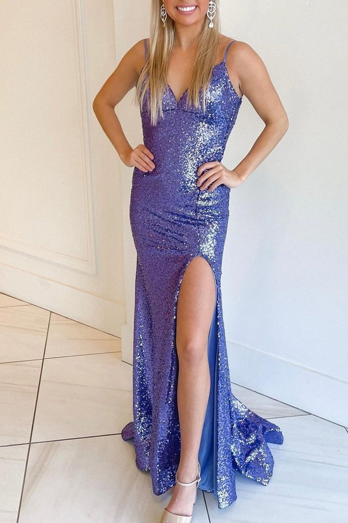 Stunning Purple Sequins Mermaid Backless Long Formal Dress