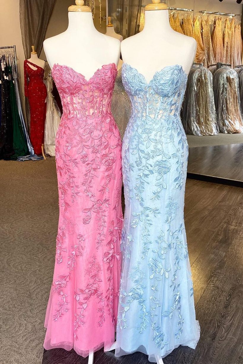 Sweet Hot Pink Lace Mermaid Long Prom Dress