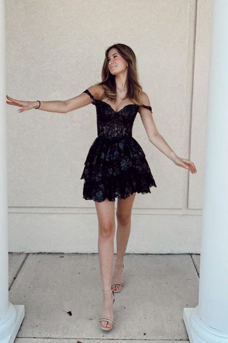 Sweet Lace Sequin Homecoming Dress, Off The Shoulder Hoco Dress, Black Girls Graduation Dresses