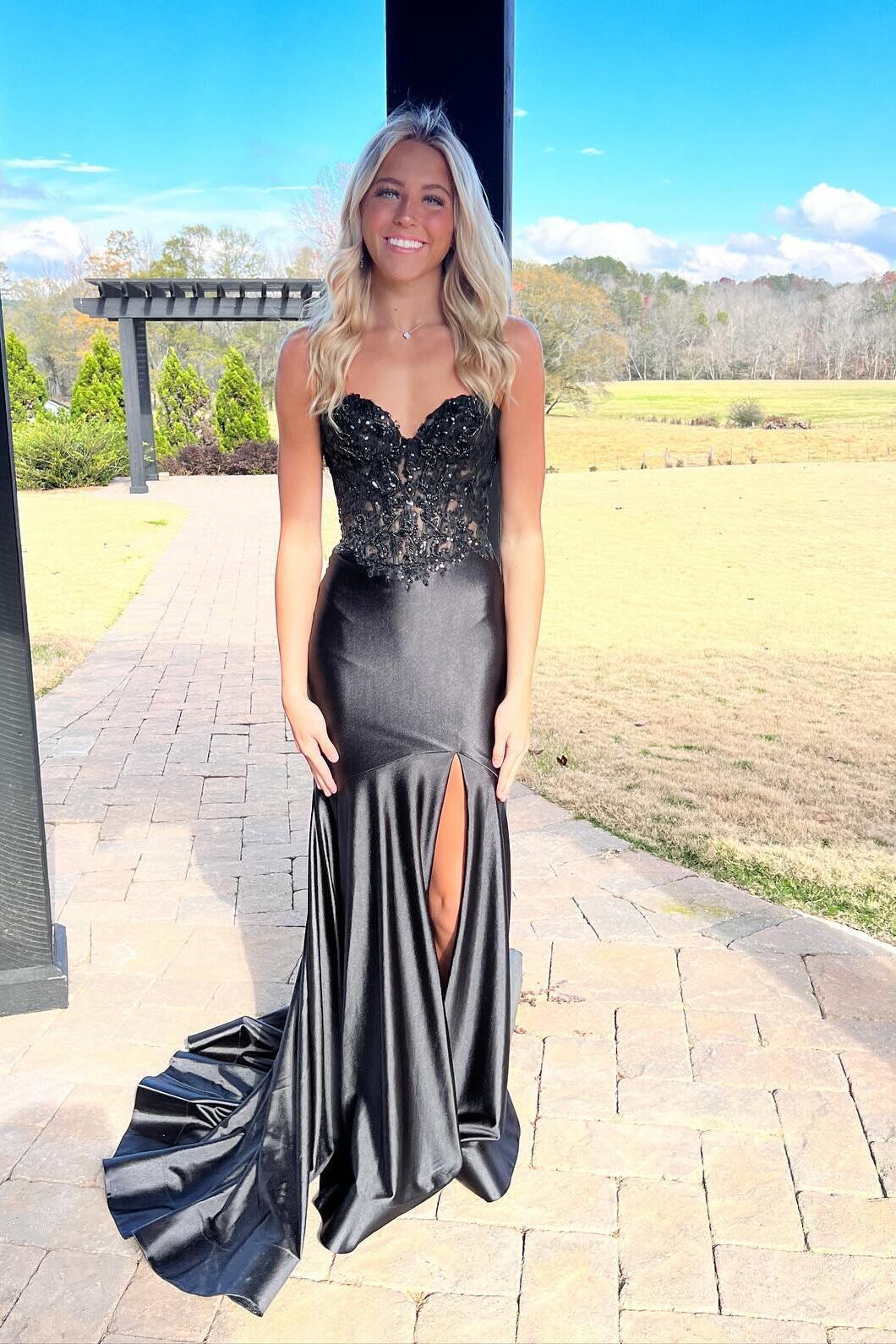 Sweetheart Black Appliques Mermaid Prom Dress with Slit