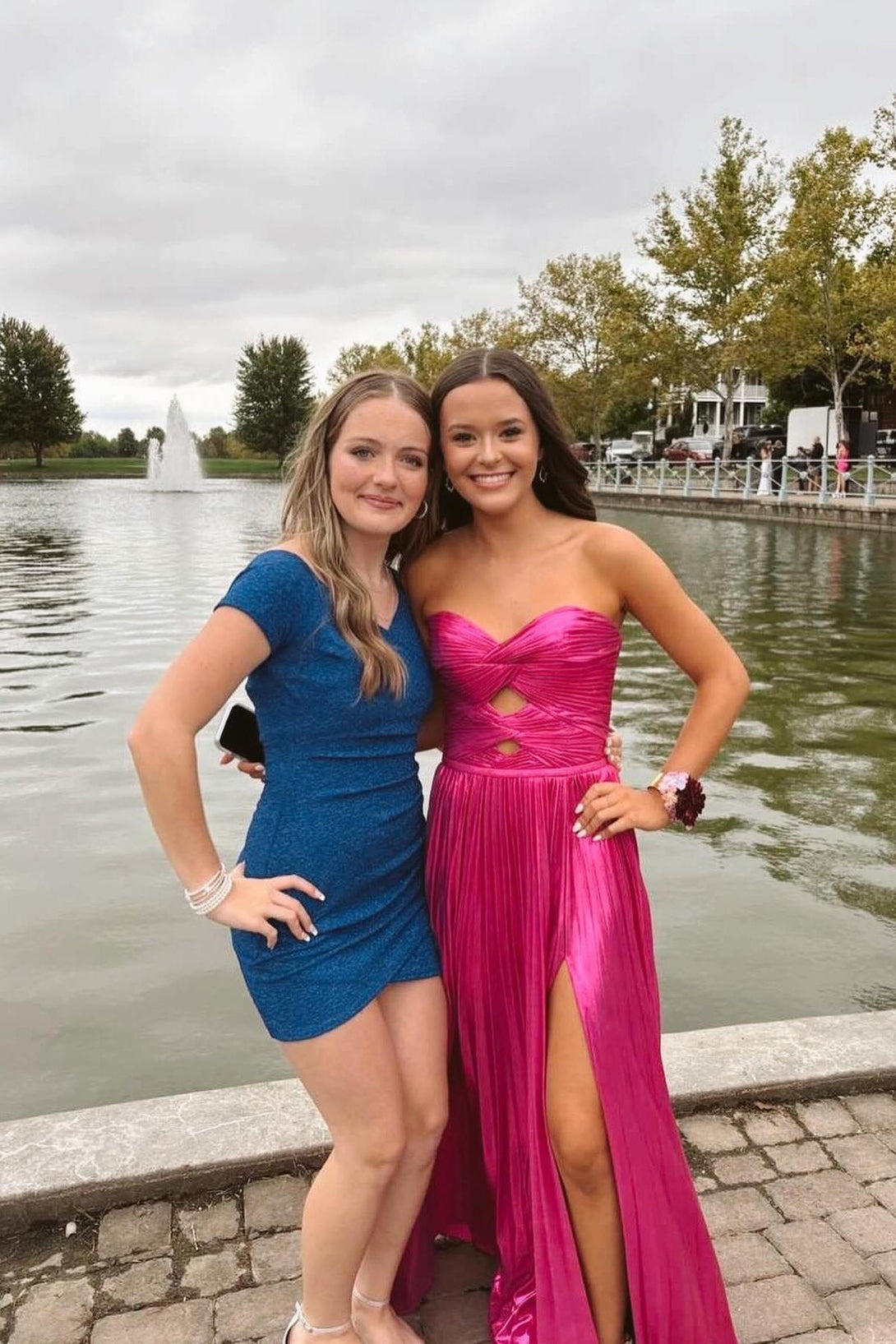 Sweetheart Blue Metallic Pleated Long Formal Dress