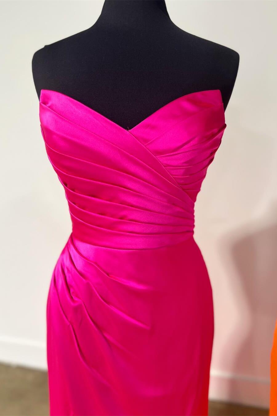 Sweetheart Hot Pink Ruched Mermaid Long Formal Dress