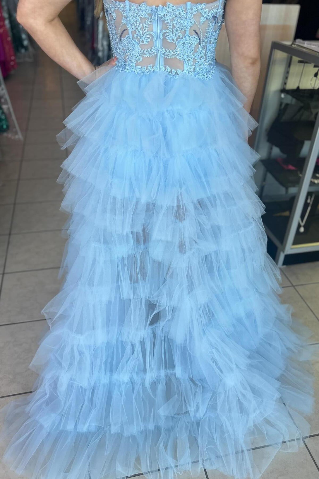 Sweetheart Light Blue High Low Tulle Ruffles Dress