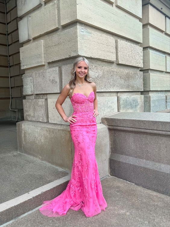 Sweetheart Mermaid Appliques Tulle Long Evening Prom Dresses