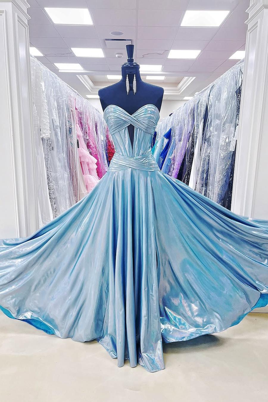 Sweetheart Metallic Yellow Pleated Long Formal Dress