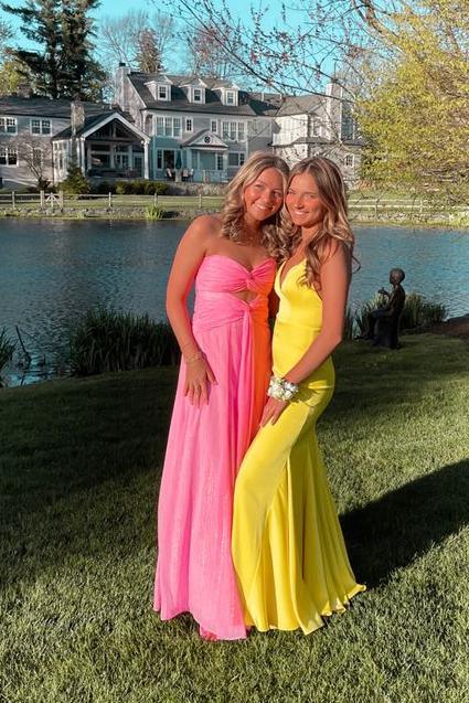 Sweetheart Yellow Chiffon Keyhole Long Formal Dress