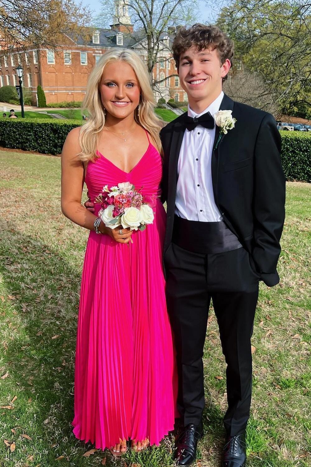 V Neck Yellow Pleated A-line Long Party Dress