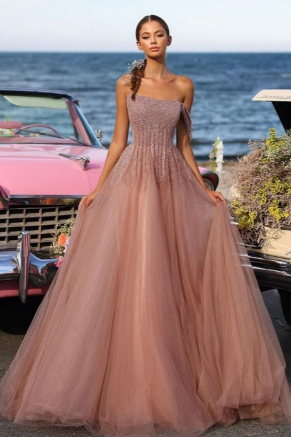 Vintage Mauve One Shoulder Sequins Mesh Prom Dress ssr0171