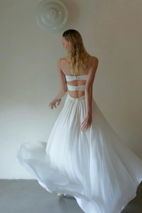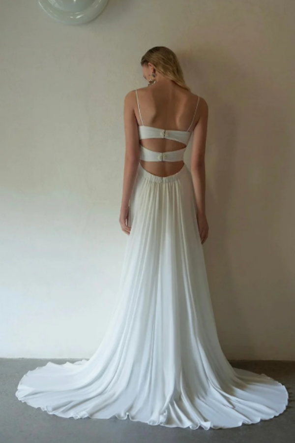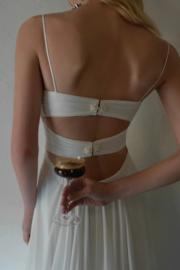 White Chiffon Summer Spaghetti-Straps Chic Back Prom Dress ssr0639