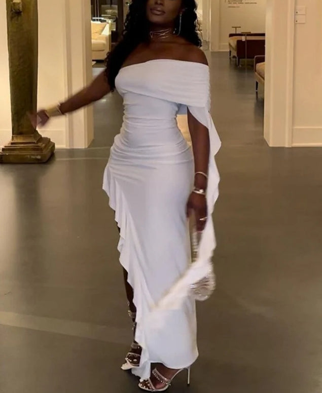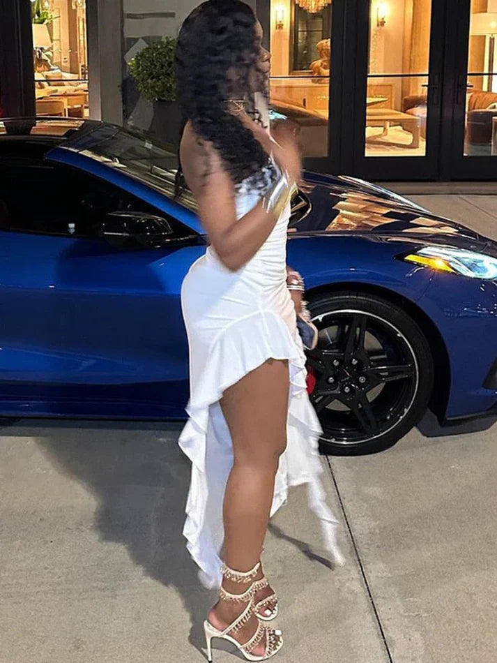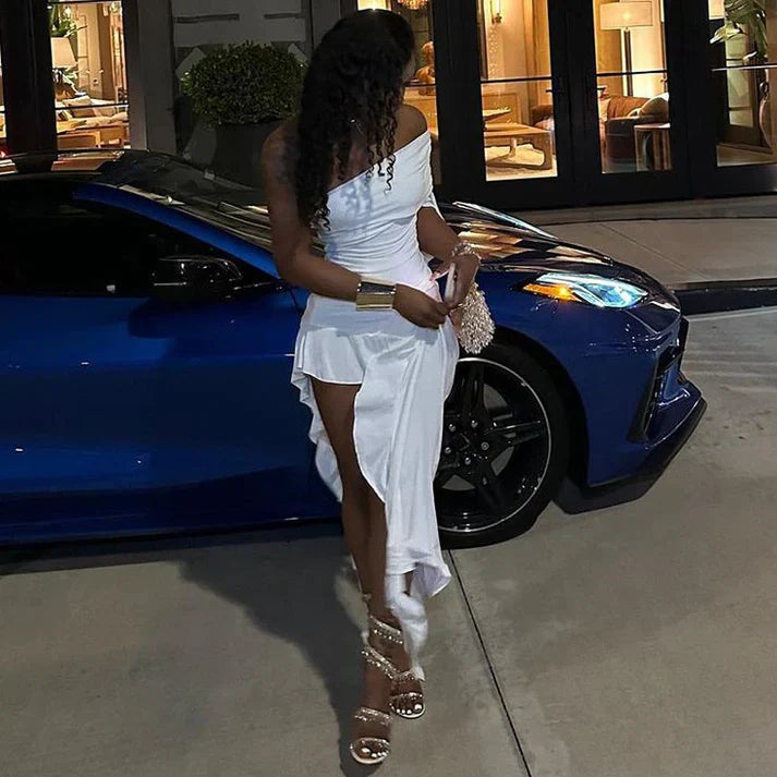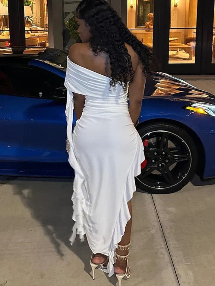 White One Shoulder Asymmetrical Prom Dress Black Girl Party Dress Charming Evening Dress