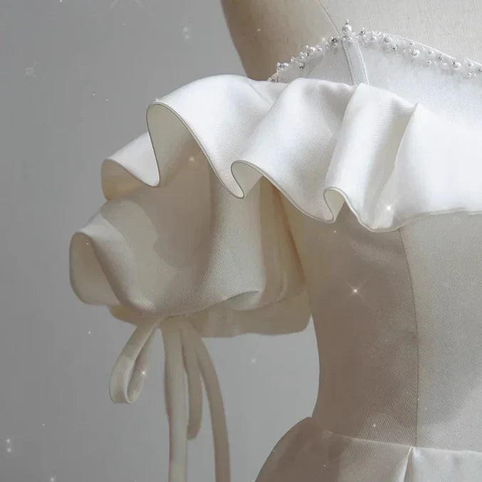 White Satin Off Shoulder Beaded Sweetheart Formal Dress Long Prom Dress Elegant Evening Dress