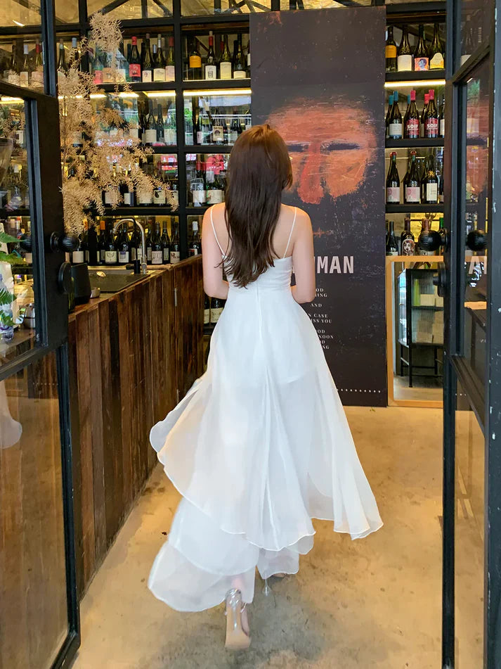 White Spaghetti Straps A-Line Long Prom Dress Charming Party Dress Evening Dress